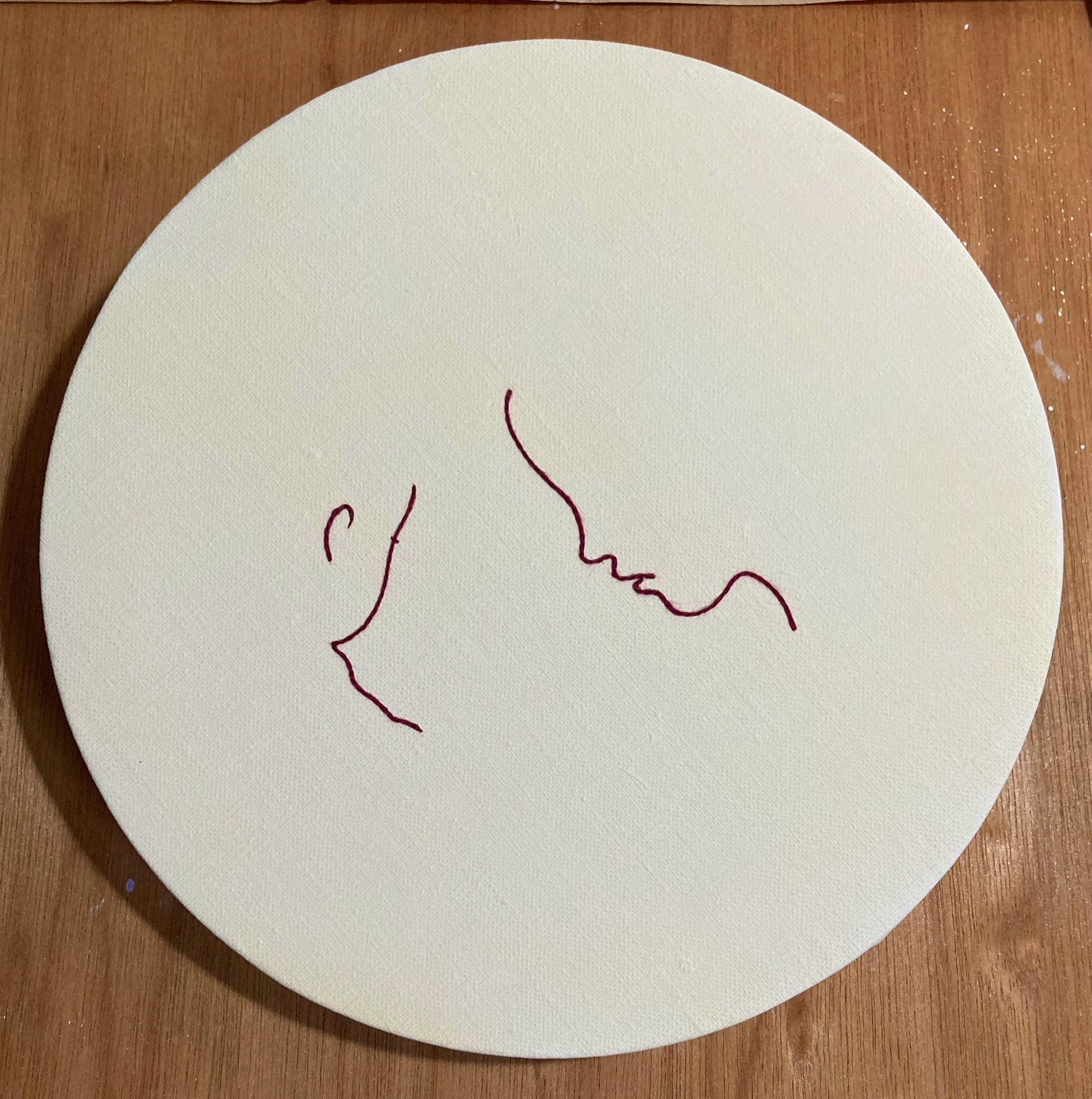 << Prev pechka Dec 23, 2025 Kazuharu ISHIKAWA Translate into English ' pechka ' 2025 / thread, acrylic, canvas, panel, etc. / φ 22.7cm