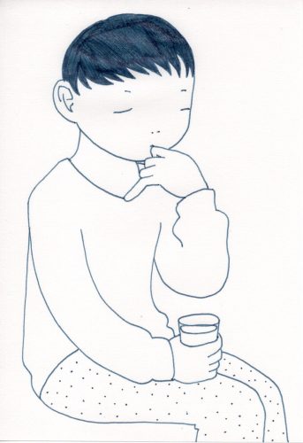 "He is thinking with a cup of milk"