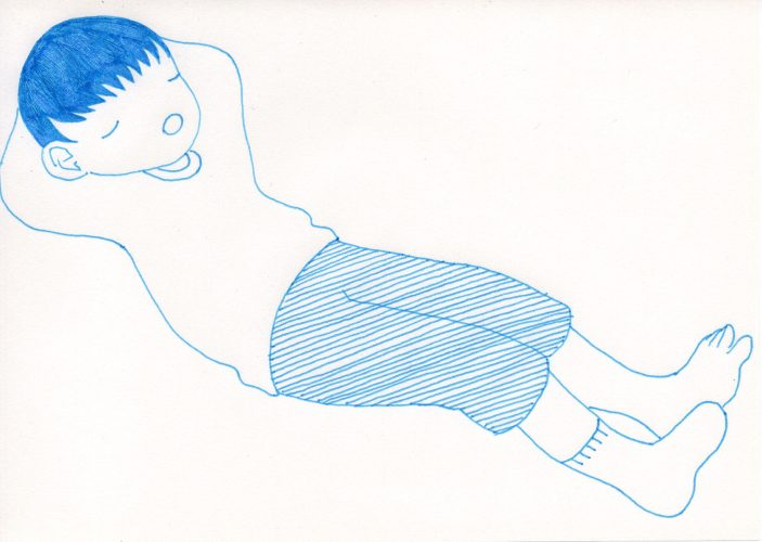 "He is thinking with a cup of milk"