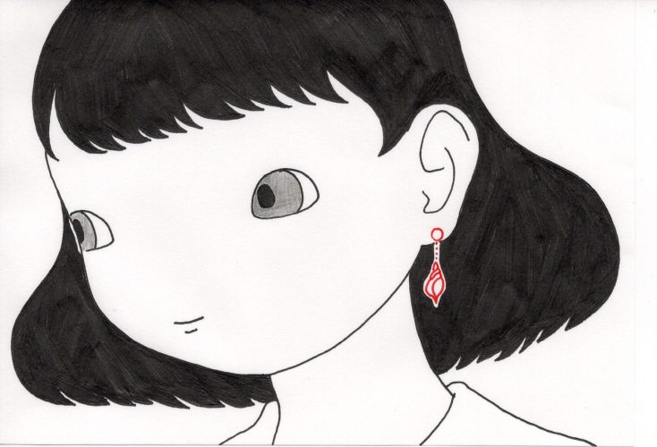 "White Small Shell Earring -red-"