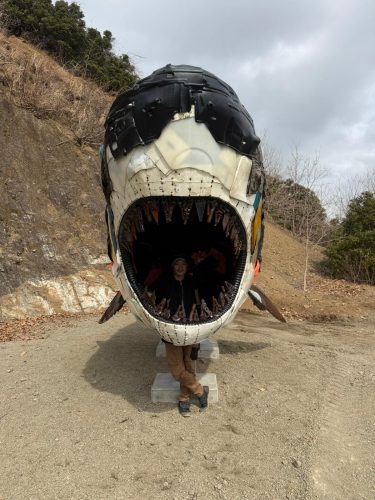 This work attempts to form a giant shark, the Megalodon, using discarded work tools like boots and helmets from that place that was once sea, along with marine debris washed ashore on the beaches of the Izu Peninsula.